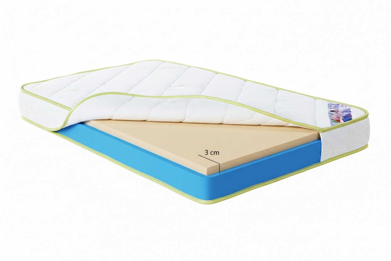 מזרן איכותי לילדים עם ליבת ספוג כחול קשיח לתמיכה יציבה ותקינה לעמוד השדרה